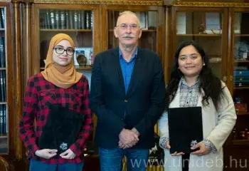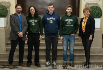 Rector Zoltán Szilvássy has awarded a two-year research scholarship to the three foreign students who represented the University of Debrecen at this year's Hackatom world competition in nuclear medicine. After winning the Hungarian round, two of them took part in the world finals, where they achieved great success, finishing in third place.