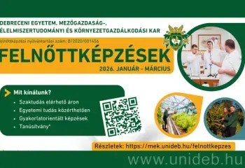 Új és sokszínű felnőttképzési palettával indítja a 2026-os évet a Debreceni Egyetem Mezőgazdaság-, Élelmiszertudományi és Környezetgazdálkodási Kara. A januártól elérhető új kurzusok a modern agrártudománytól a gasztronómián át egészen az egzotikus állatok világáig vezetnek – mindezt gyakorlatorientált formában, a kar korszerű laboratóriumaiban és oktatási tereiben.