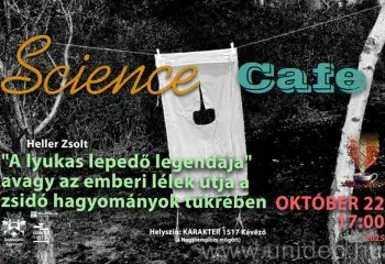 „A lyukas lepedő legendája” avagy az emberi lélek útja a zsidó hagyományok tükrében címmel Heller Zsolt, a Debreceni Egyetem Történelmi és Néprajzi Doktori Iskolájának doktorandusza, a Debreceni Zsidó Hitközség alelnöke tart előadást a Science Caféban. A rendezvény október 22-én, szerdán 17 órakor kezdődik a Karakter 1517 Könyvesbolt és Kávézóban.